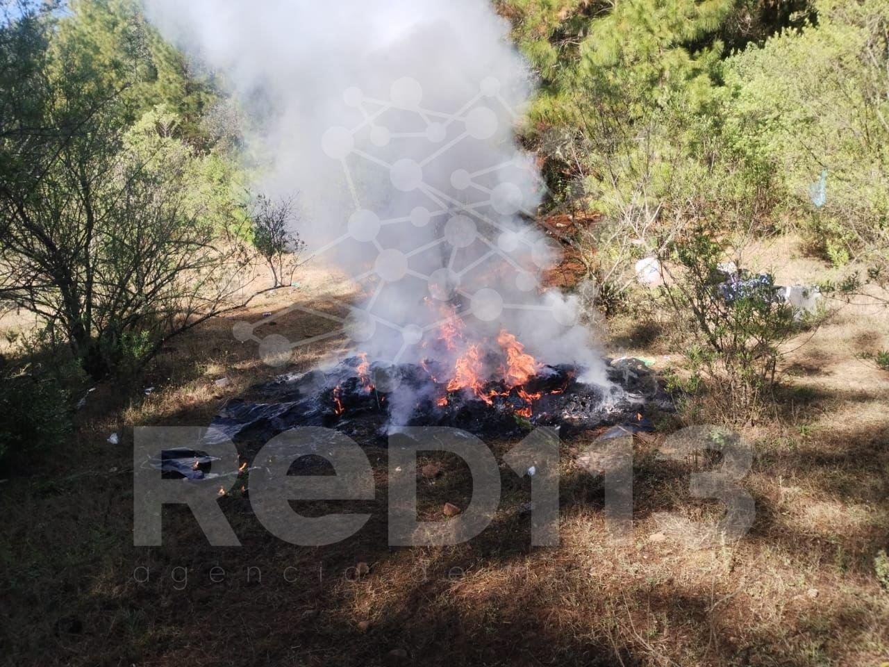 En el sitio las casas de campaña y los uniformes fueron incinerados; posteriormente los enervantes quedaron a disposición de la autoridad competente a efecto de dar continuidad a las actuaciones establecidas.