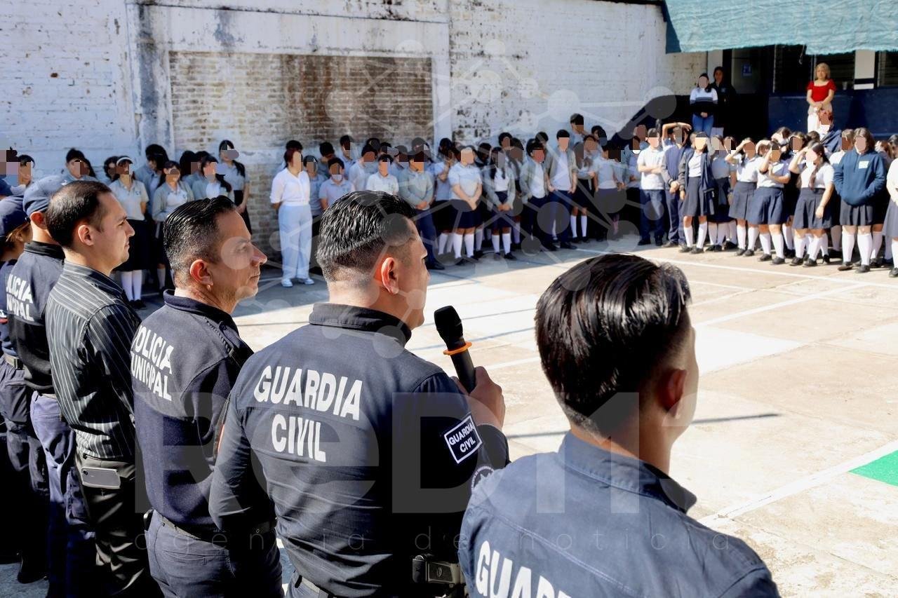 Personal del Agrupamiento de Proximidad Social de la Guardia Civil imparte pláticas sobre educación vial, prevención de conductas de riesgo, medidas contra la extorsión y uso adecuado del número de emergencias 911, reforzando así la cultura de la legalidad desde edades tempranas.