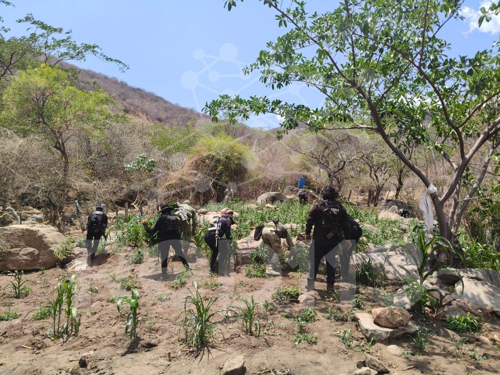 Estas acciones forman parte del despliegue interinstitucional permanente que se mantiene en esta región del estado, con el objetivo de inhibir la producción y distribución de enervantes.