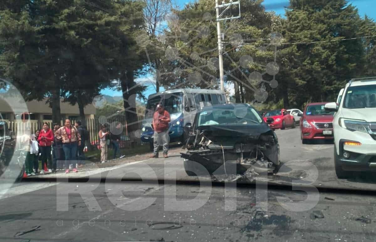 Uruapan, Mich.- 14 de octubre de 2025.- Un choque de frente entre dos vehículos compactos dejó un saldo preliminar de 3 lesionados, sobre la carretera Uruapan-Paracho, a la altura de la desviación a Los Reyes.
