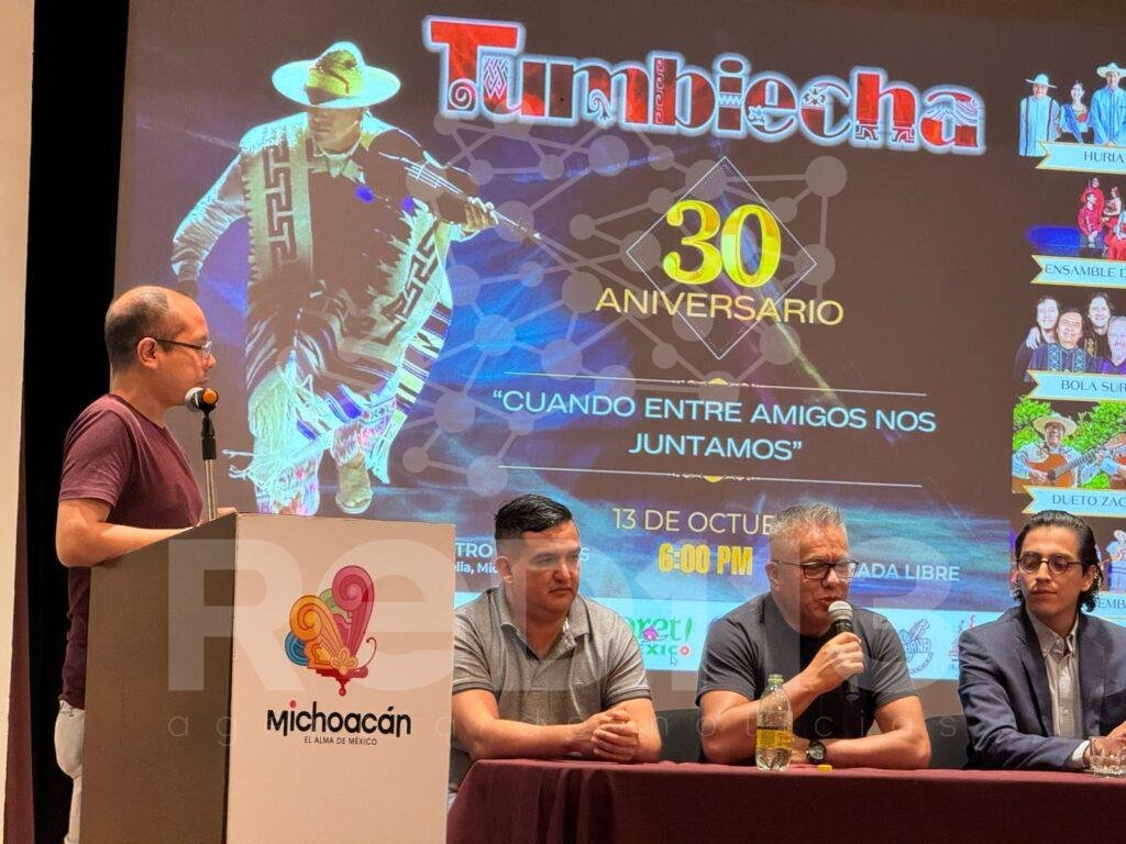 Morelia, Michoacán, 13 de octubre de 2024.- Tumbiecha está de regreso a casa para celebrar sus 30 años de trayectoria con un concierto con acceso libre que ofrecen este domingo 13 de octubre en el Teatro Morelos en punto de las 18:00 horas, por lo que se recomienda llegar 30 minutos antes de la hora marcada, y de esta manera, los asistentes comiencen a ocupar los lugares.