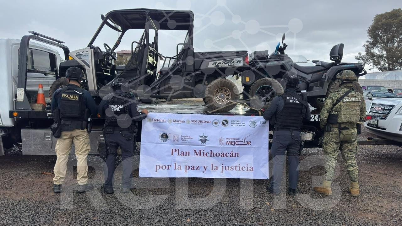 Entre los vehículos se encontraban cuatro motocicletas, un Slingshot, una camioneta de la marca GMC y una más de la marca Dodge. Las armas aseguradas correspondían a los calibres 5.56 mm. y 9mm.