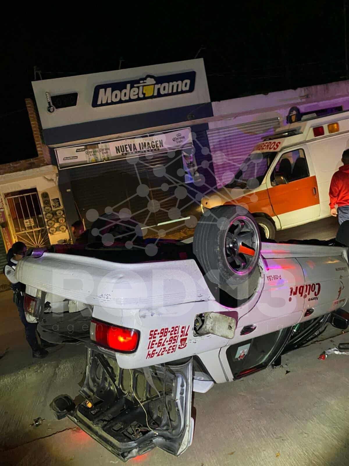 Zitácuaro, Mich.- Martes 14 de octubre de 2025.- Un taxi de la línea «Colibrí» volcó en la comunidad de San Miguel, municipio de Zitácuaro, hecho que únicamente dejó daños materiales, comentaron fuentes de rescate.